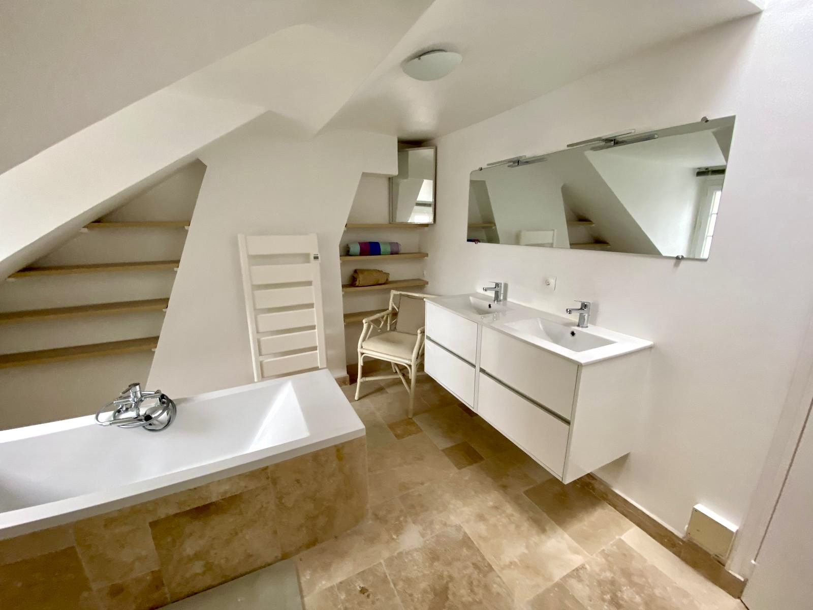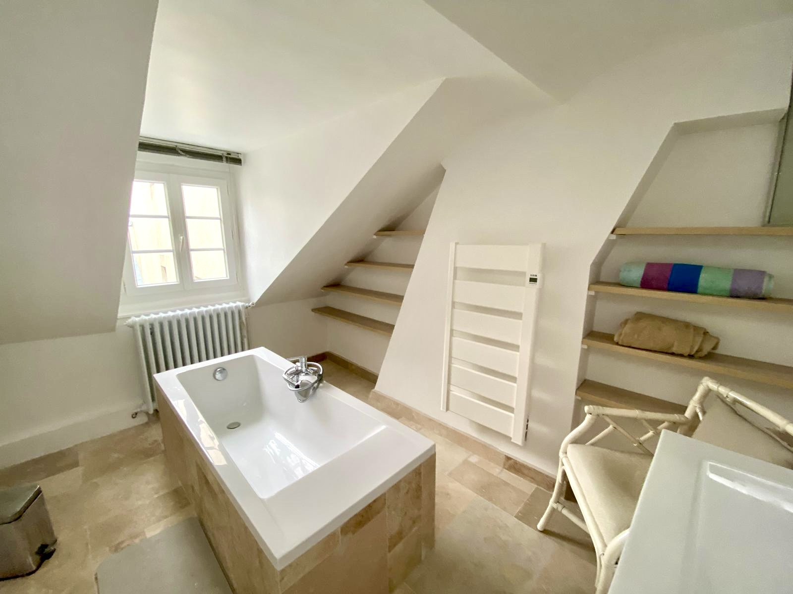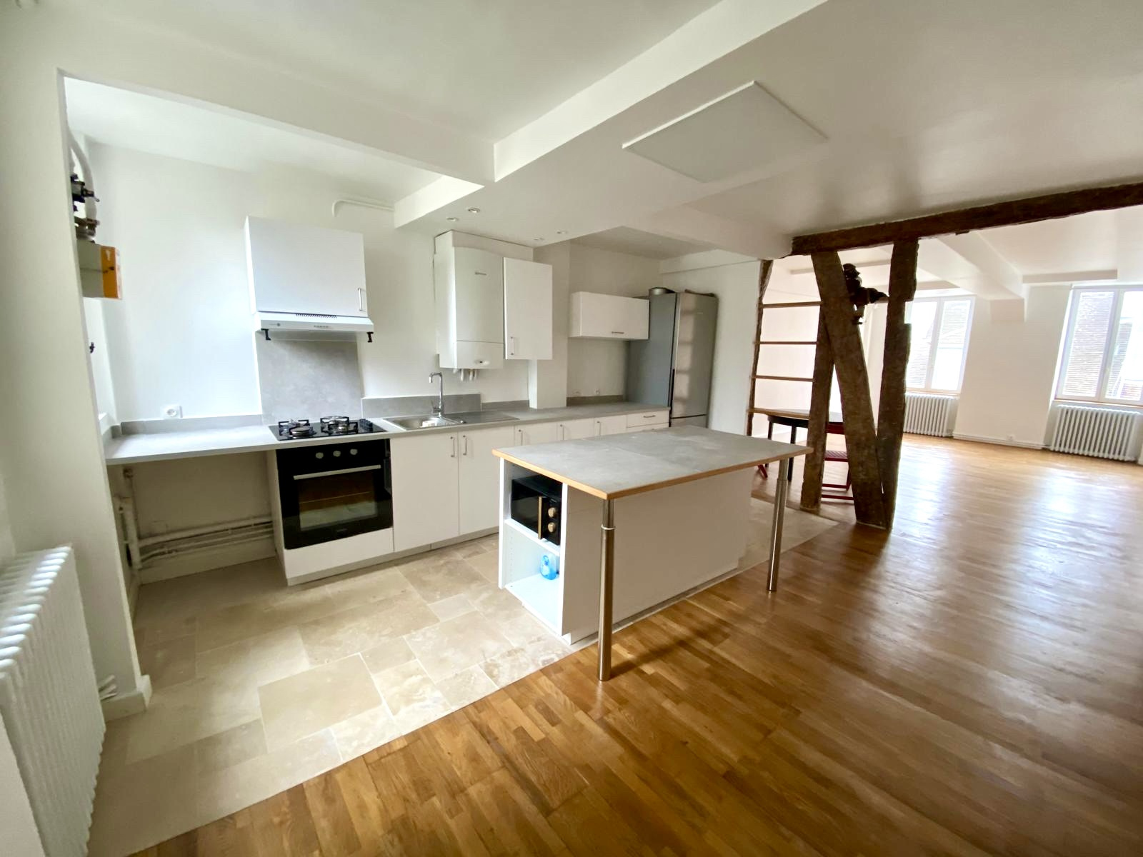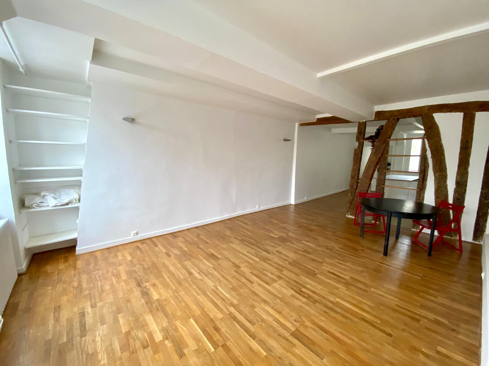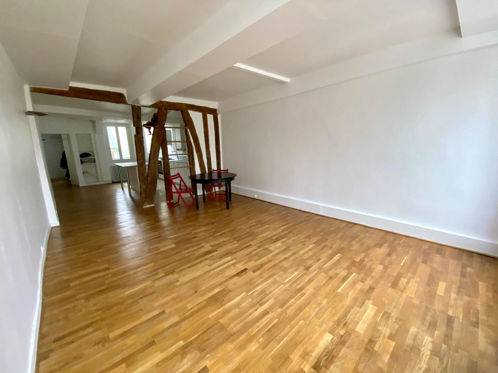 LOCATION MEUBLÉE, Paris 3. Rue Chapon. Au 4eme étage (sans ascenseur) d'une petite copropriété tranquille, un beau duplex avec grand salon et belle hauteur sous plafond et une cuisine équipée avec emplacement de lave vaisselle. À l'étage: Grande chambre avec beaucoup de rangements et une salle de bain avec baignoire et lave linge. Location meublée avec cuisine aménagée et équipée. Appartement avec de beaux volumes, beaucoup de charme (poutres,parquet) et refait à neuf. Chauffage et eau chaude individuels et plaque de cuisson au gaz. Présence de la fibre. Libre immédiatement