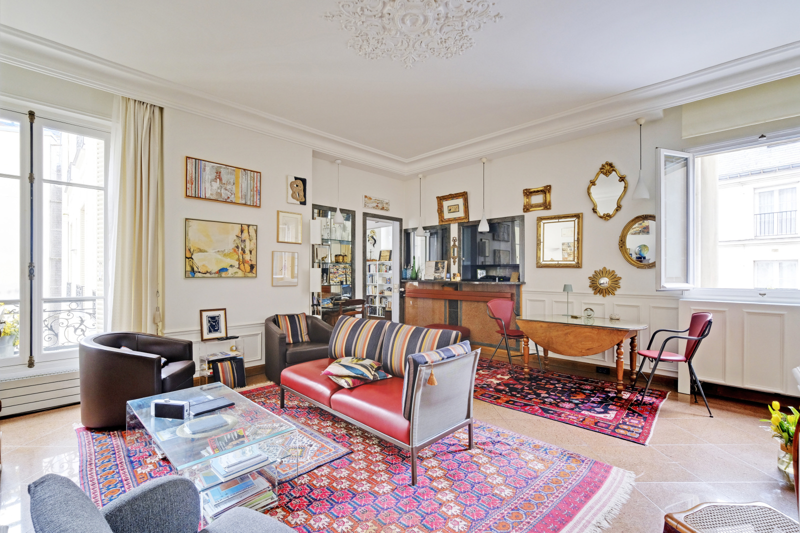 Idéalement situé entre le square du Temple et la place de la République, au troisième étage avec ascenseur d’un élégant immeuble datant de 1900 avec gardien, ce bel appartement de 4 pièces séduit par ses beaux volumes et son charme de l’ancien. Il se compose d’un vaste salon traversant, d’une cuisine séparée, aménagée et entièrement équipée, de trois chambres, d’une salle d’eau ainsi que de WC séparés. En excellent état, ce bien a su préserver ses belles moulures d’origine. Bénéficiant de plusieurs expositions, l’appartement profite d’un environnement particulièrement calme, donnant sur de larges cours. Climatisation. Cave.